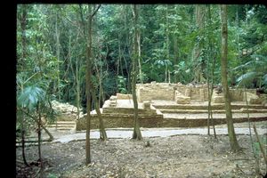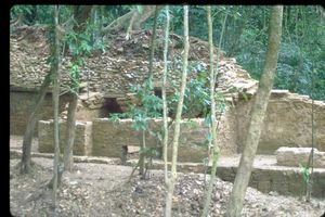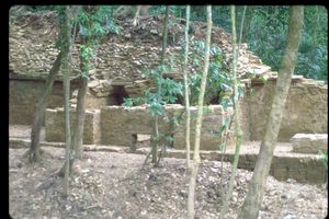 | Site: Palenque | | Schele Number: 11082 | | Description: fragments of a flanged incensario stand from Temple XVIII, rear incised text | | Current Location: bodega, site museum | | Hieroglyph: yes | | Artifact: incensario, incense burner | | Chronological Era: Late Classic | | Notes: cf. Schele Drawing 155 | | Culture: Maya | | See Also: Schele Drawings for "" | |